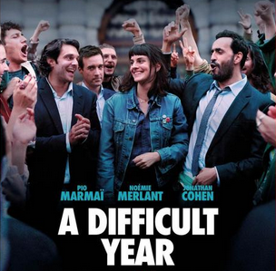 Both in debt up to their necks, Albert (Marmaï) and Bruno (Cohen) have turned to a community worker (Mathieu Amalric) to try and help get a grip on their lives. However, at one of their group sessions, they stumble into an adjoining meeting room hosting a gathering of young social activists, led by a vivacious organiser (Noémie Merlant). Attracted more by the free beer and chips than the group’s struggle against consumerism and protection of the environment (whilst acknowledging the hugs are quite nice), Albert and Bruno join the movement without any particular conviction, but soon sense an opportunity… if they don’t get arrested first. In A DIFFICULT YEAR, these two compulsive spenders get much more than they bargained for when they try and scam their way out of trouble.